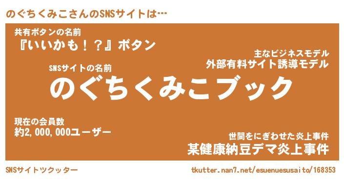 | 男性向けラノベタイトル風あだ名 | 『ノグチクミコアートオンライン』 |