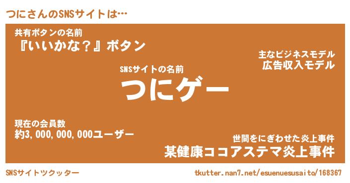 | ヘコむあだ名 | 『つにっふぃ~』『なまこ酢』 |