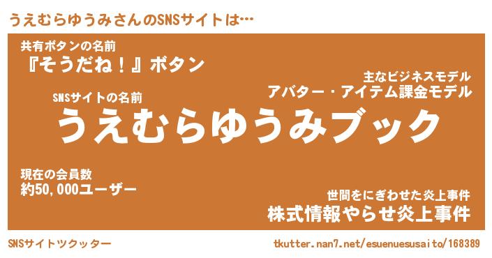 | 肩書あだ名 | 『うえむらゆうみ御曹司』 |