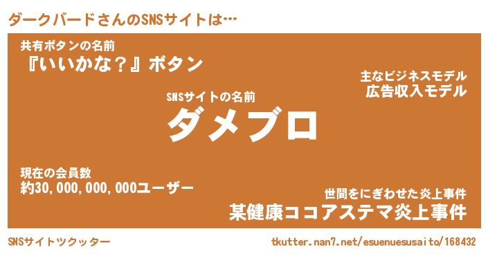 | 男性向けラノベタイトル風あだ名 | 『ダークバードアートオンライン』 |