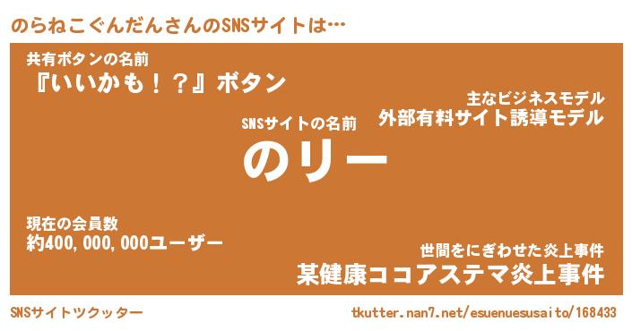 | ヘコむあだ名 | 『のらにゅー』『なまこ酢』 |