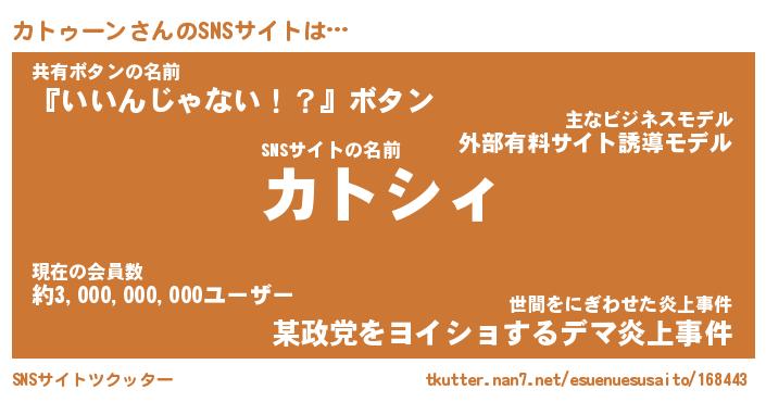 | 肩書あだ名 | 『カトゥーン社長』『カトゥーン大統領』 |