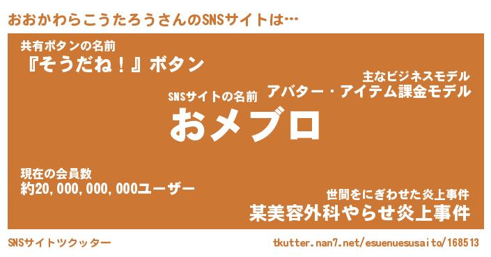 | 胡散臭い通販商品みたいなあだ名 | 『モテモテ間違いなし水晶球…その名も「おおかわらこうたろう」』 |