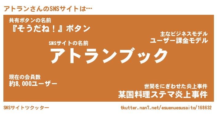 | 肩書あだ名 | 『アトランCEO』『アトラン総理大臣』 |