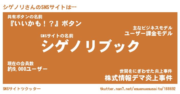 | 男性向けラノベタイトル風あだ名 | 『シゲノリアートオンライン』 |