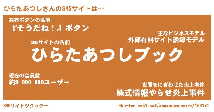 | 胡散臭い通販商品みたいなあだ名 | 『億万長者になれる霊験あらたかなお札…その名も「ひらたあつし」』 |