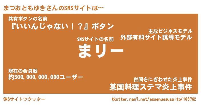 | 肩書あだ名 | 『まつおともゆき店長』 |