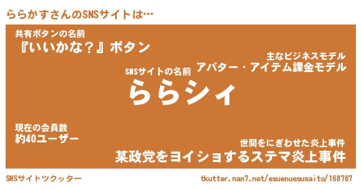 | ヘコむあだ名 | 『ららにー』『酢こんぶ』 |