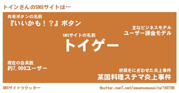 | 男性向けラノベタイトル風あだ名 | 『トインの憂鬱』 |