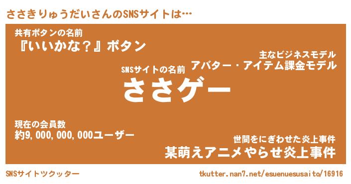 | 肩書あだ名 | 『ささきりゅうだい社長』 |