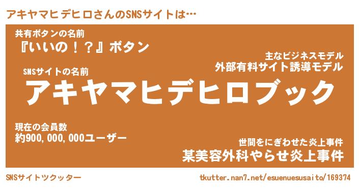 | ツイッター | アキヤマヒデヒロさんのツイッターID『dendenmushi_kun』 |