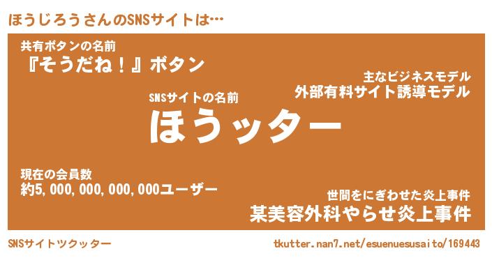| 胡散臭い通販商品みたいなあだ名 | 『億万長者になれる霊験あらたかなお札…その名も「ほうじろう」』 |