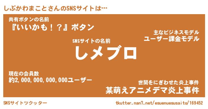 | 意味不明あだ名 | 『ペロリンしぶかわまこと』 |