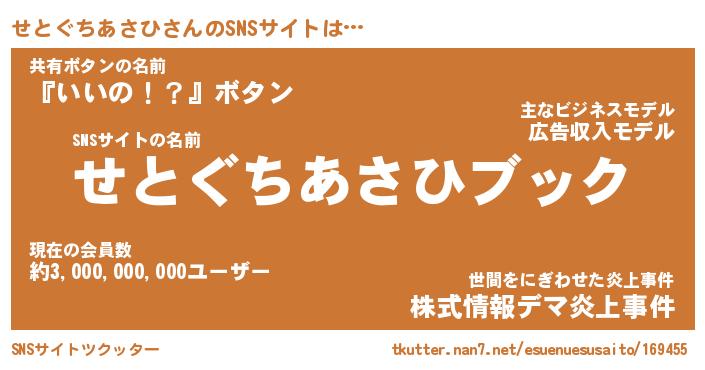 | 肩書あだ名 | 『せとぐちあさひCEO』 |