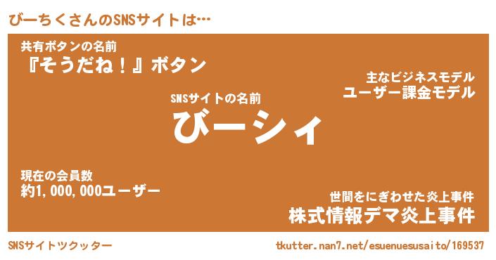 | 肩書あだ名 | 『びーちく店長』『びーちく大統領』 |