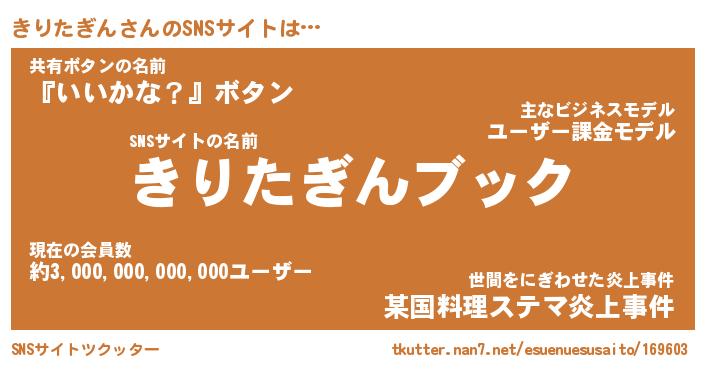 | 男性向けラノベタイトル風あだ名 | 『キリタギンアートオンライン』 |