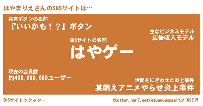 | ファンタジー風あだ名 | 『ハヤフェル』『エターナルハヤマリエー』 |