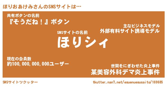 | 肩書あだ名 | 『ほりおあけみCEO』『ほりおあけみ大統領』 |
