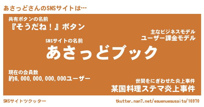 | 意味不明あだ名 | 『ペロリンあさっど』『永久保存あさっど』 |