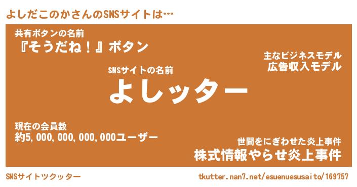 | 胡散臭い通販商品みたいなあだ名 | 『億万長者になれる水晶球…その名も「よしだこのか」』 |
