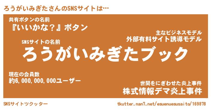 | 肩書あだ名 | 『ろうがいみぎた店長』 |