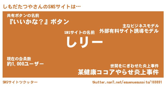 | 男性向けラノベタイトル風あだ名 | 『しもだたつやの憂鬱』 |