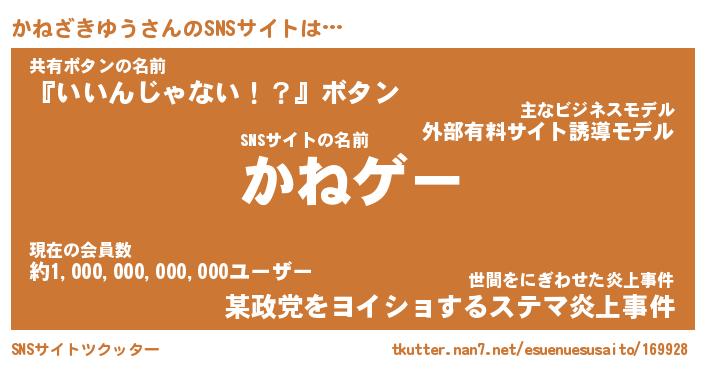| 肩書あだ名 | 『かねざきゆう社長』『かねざきゆう先生』 |