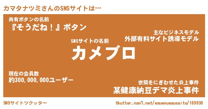| 肩書あだ名 | 『カマタナツミ店長』『カマタナツミ塾長』 |