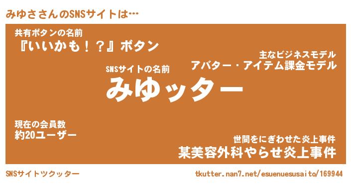 | ファンタジー風あだ名 | 『ミユフェル』『エターナルミユサー』 |