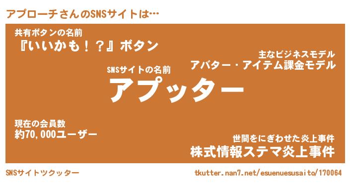 | ヘコむあだ名 | 『アプふぇ~』『酢こんぶ』『アプお』 |