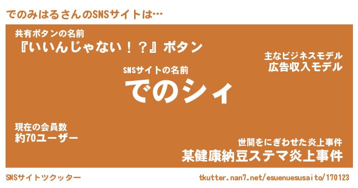 | ヘコむあだ名 | 『でのにー』『豆乳』『での太郎』 |