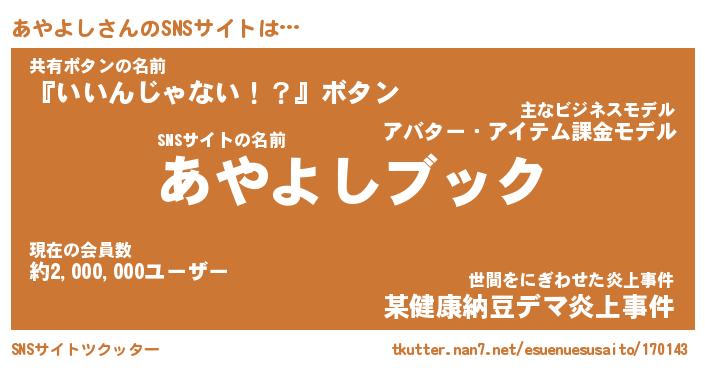 | 胡散臭い通販商品みたいなあだ名 | 『億万長者になれる水晶球…その名も「あやよし」』 |