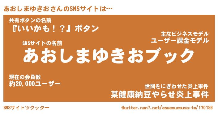 | 男性向けラノベタイトル風あだ名 | 『アオシマユキオアートオンライン』 |