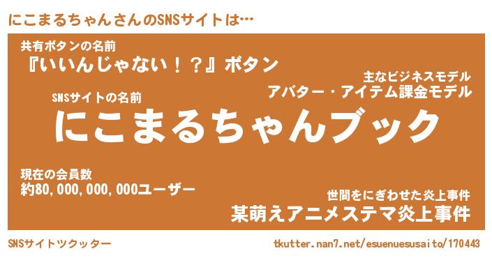 | 男性向けラノベタイトル風あだ名 | 『ニコマルチャンアートオンライン』 |