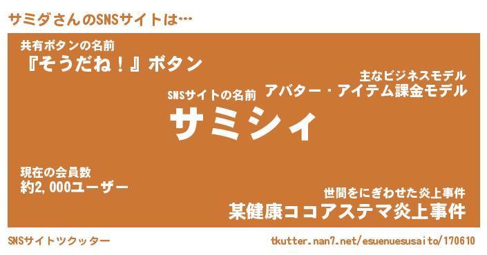 | ヘコむあだ名 | 『サミっふぃ~』『つくし』『サミを』 |
