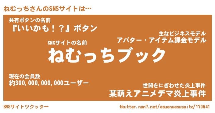 | 胡散臭い通販商品みたいなあだ名 | 『億万長者になれるブレスレット…その名も「ねむっち」』 |