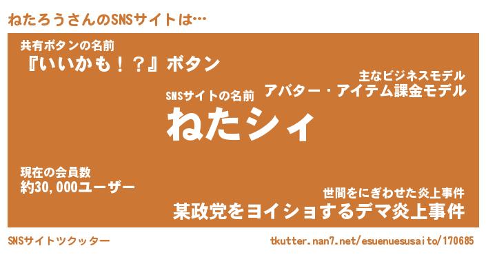 | 肩書あだ名 | 『ねたろうCEO』『ねたろう国家主席』 |