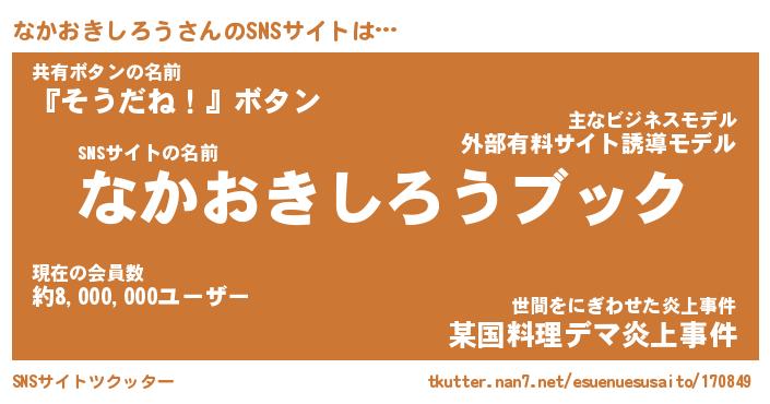 | ツイッター | なかおきしろうさんのツイッターID『namakemono_idle』 |