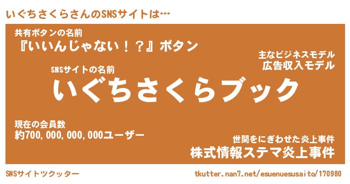 | 胡散臭い通販商品みたいなあだ名 | 『億万長者になれるブレスレット…その名も「いぐちさくら」』 |