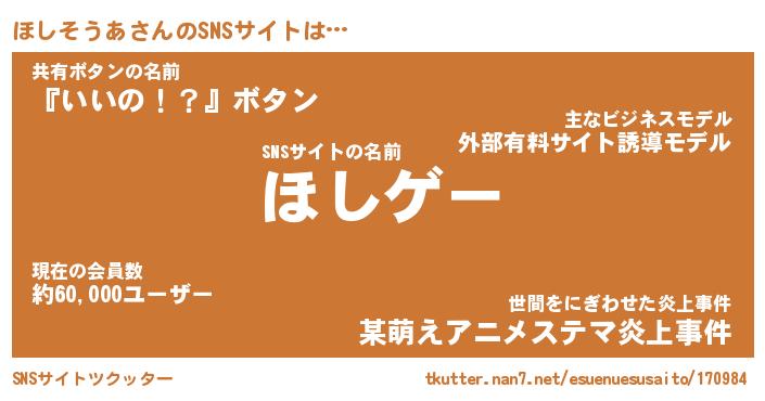 | ファンタジー風あだ名 | 『ホシフェル』『エターナルホシソウアー』 |