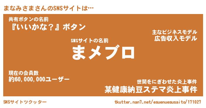 ヘコむあだ名 | 『まなにゅー』『なまこ酢』『まなを』 |