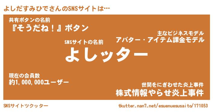 | 伝説のあだ名 | 『封印されし竜騎士よしだすみひで』 |