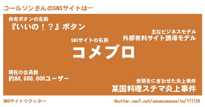 | 男性向けラノベタイトル風あだ名 | 『コールソンアートオンライン』 |