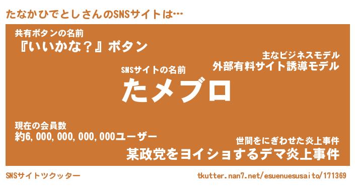 | 肩書あだ名 | 『たなかひでとし御曹司』 |