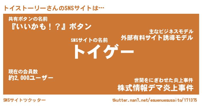 | 胡散臭い通販商品みたいなあだ名 | 『必ず成功する霊験あらたかなお札…その名も「トイストーリー」』 |