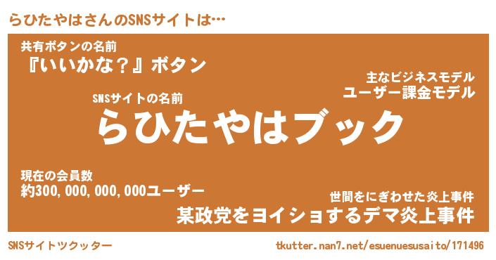 | 男性向けラノベタイトル風あだ名 | 『ラヒタヤハアートオンライン』 |