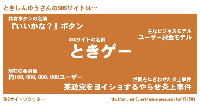 | 男性向けラノベタイトル風あだ名 | 『ときしんゆうの憂鬱』 |