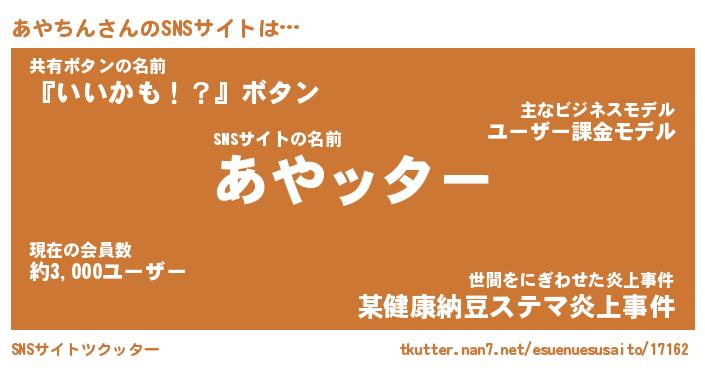 | 男性向けラノベタイトル風あだ名 | 『アヤチンアートオンライン』 |
