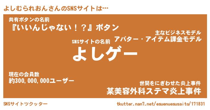 | ヘコむあだ名 | 『よしにー』『牛乳』『よし太郎』 |