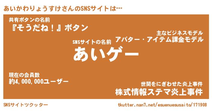 | 胡散臭い通販商品みたいなあだ名 | 『必ず成功する霊験あらたかなお札…その名も「あいかわりょうすけ」』 |